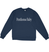 Penthouse Baby printed on front of navy crewneck sweatshirt. Kelsea Ballerini logo printed on back of neck.