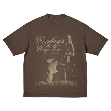 Brown comfort colors t-shirt with Kelsea Ballerini photo and Cowboys Cry Too logo on front, blank on back.