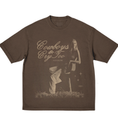 Brown comfort colors t-shirt with Kelsea Ballerini photo and Cowboys Cry Too logo on front, blank on back.